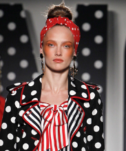 Now that I have long hair, I love finding new hair accessories to not only wear but to pull my mane back out of my face. Now on the Sewing Republic website is my Twist and Shout Headband project made from faux silk. The above headbands are from the spring 2011 RTW Moschino collection and feature a knot in the middle of each band. This look can be achieved very easily with the Twist and Shout headband tutorial by simply widening the pattern and tying a knot in the fabric strip before attaching the backing. Below is a picture of me wearing the headband for Sewing Republic, which is a great way to get rid of any scraps you have left over.